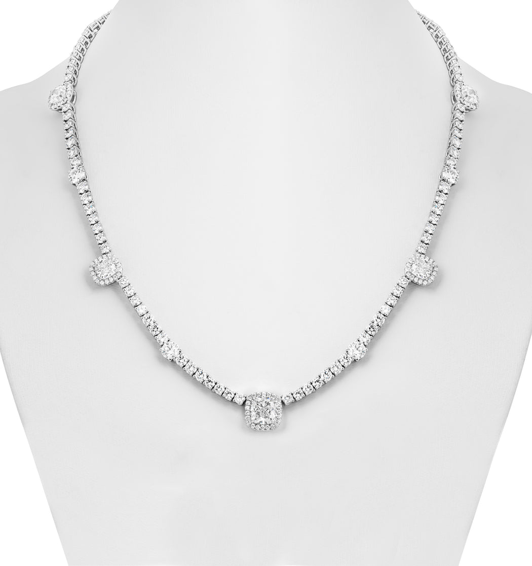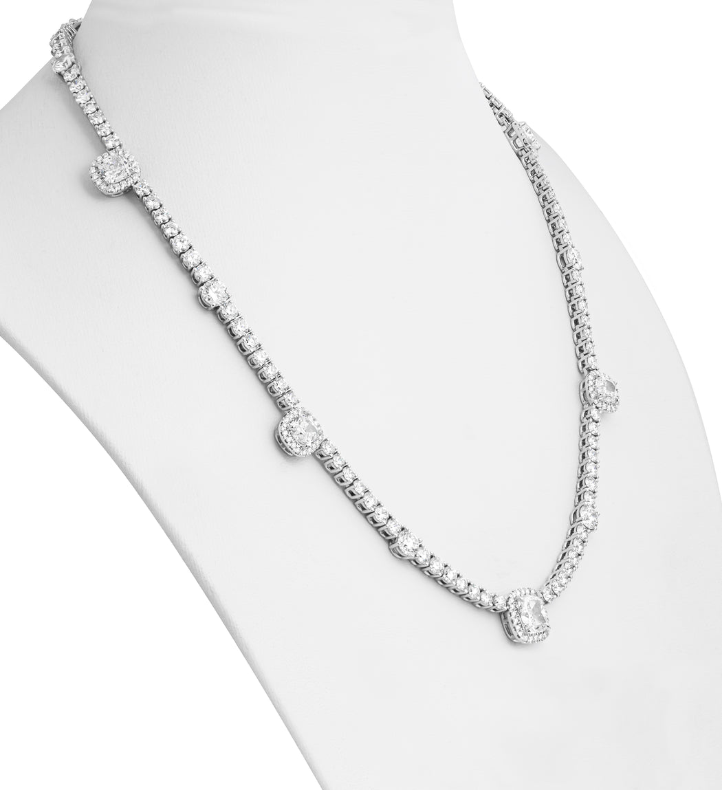 GIA Certified Tennis Necklace with Cushion cut and Round diamonds