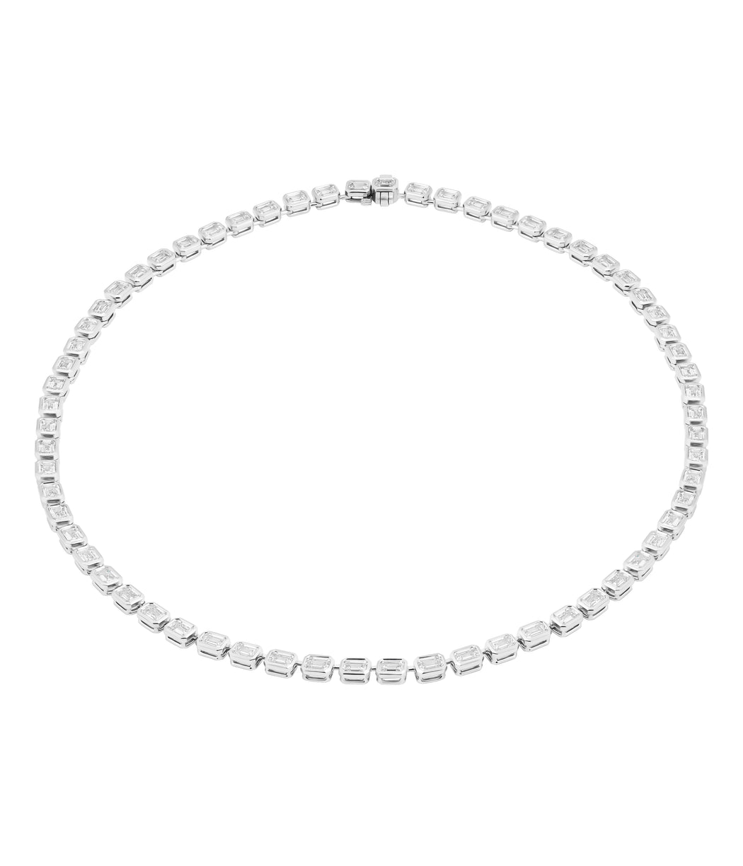GIA Certified Tennis Necklace with East West set Emerald cut Diamonds