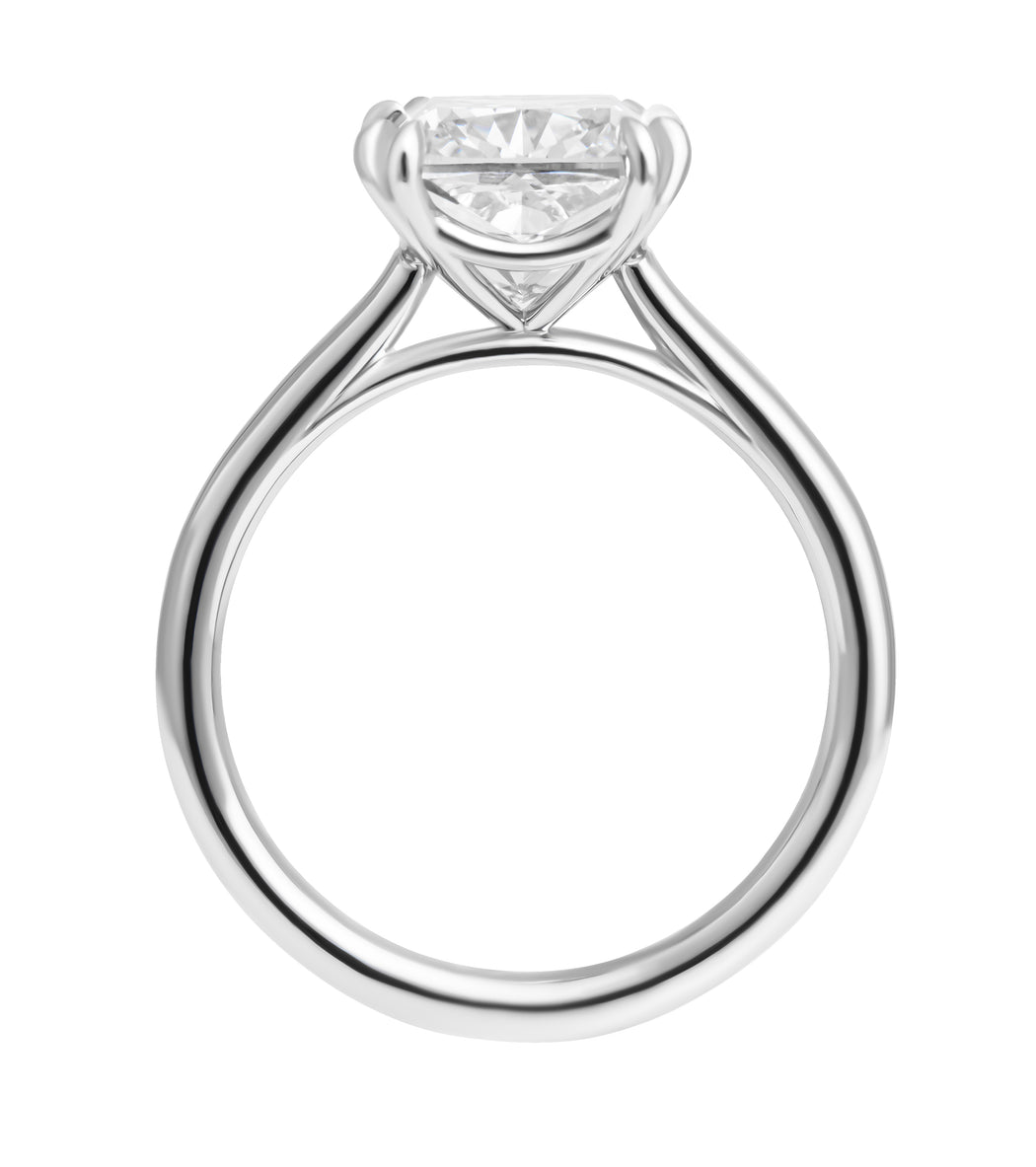 Engagement ring in PT950 with split claw prongs and swoop halo.