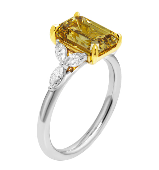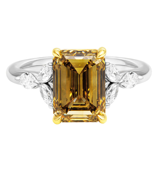 GIA Certifies 3 stone ring with 3.18ct Fancy Dark Brown Yellow VS2 Emerald Cut