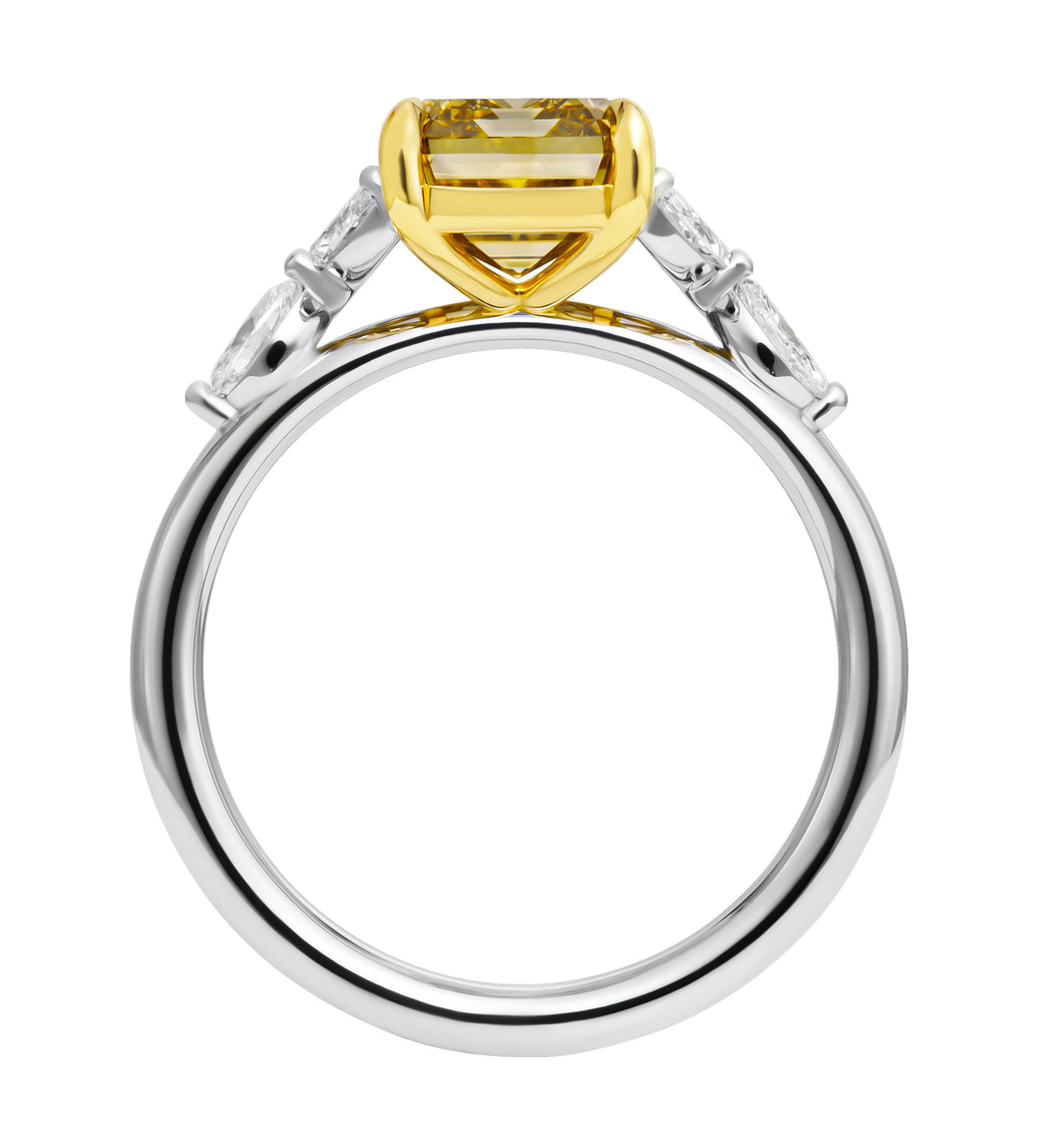 GIA Certifies Multi Side stone ring with 3.18ct Fancy Dark Brown Yellow VS2 Emerald Cut in 14k Yellow Gold & Platinum