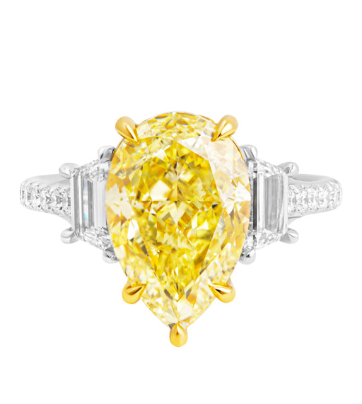 GIA Certified 3 Stone ring with 7.78ct Fancy Yellow Pear Shape Diamond