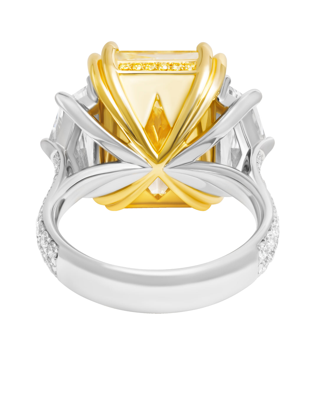 Center: 11.18ct Natural Fancy Light Yellow Even VVS2 Radiant shape Diamond GIA#2225264298