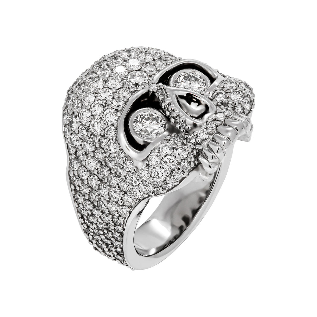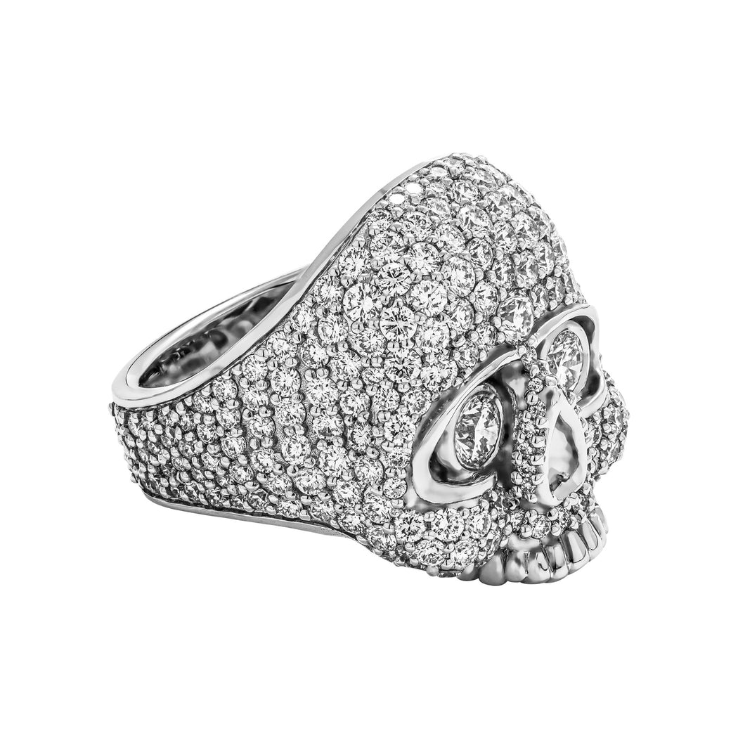 Take your pick of the loot with this crowned skull ring expertly handcrafted in gleaming Platinum and amazingly iced out with 6 carat white diamonds.
