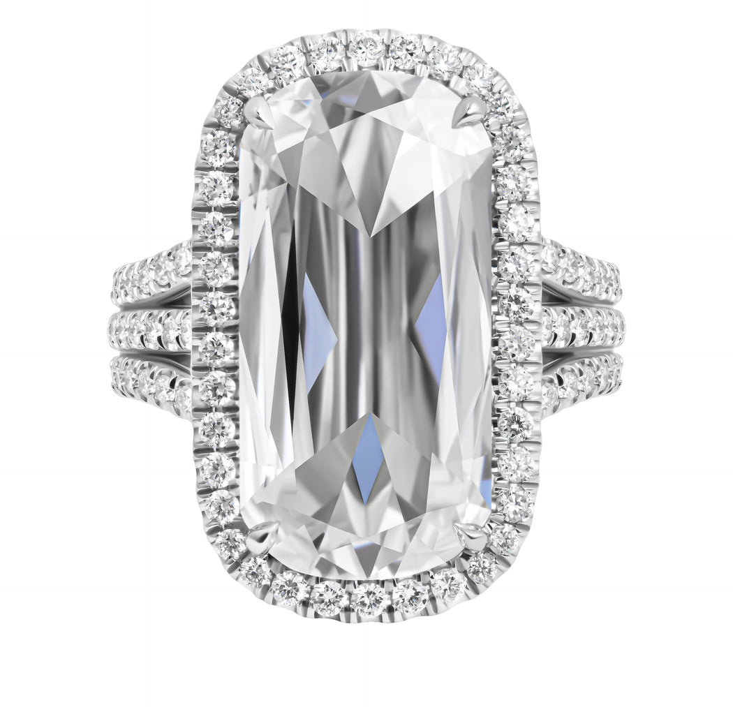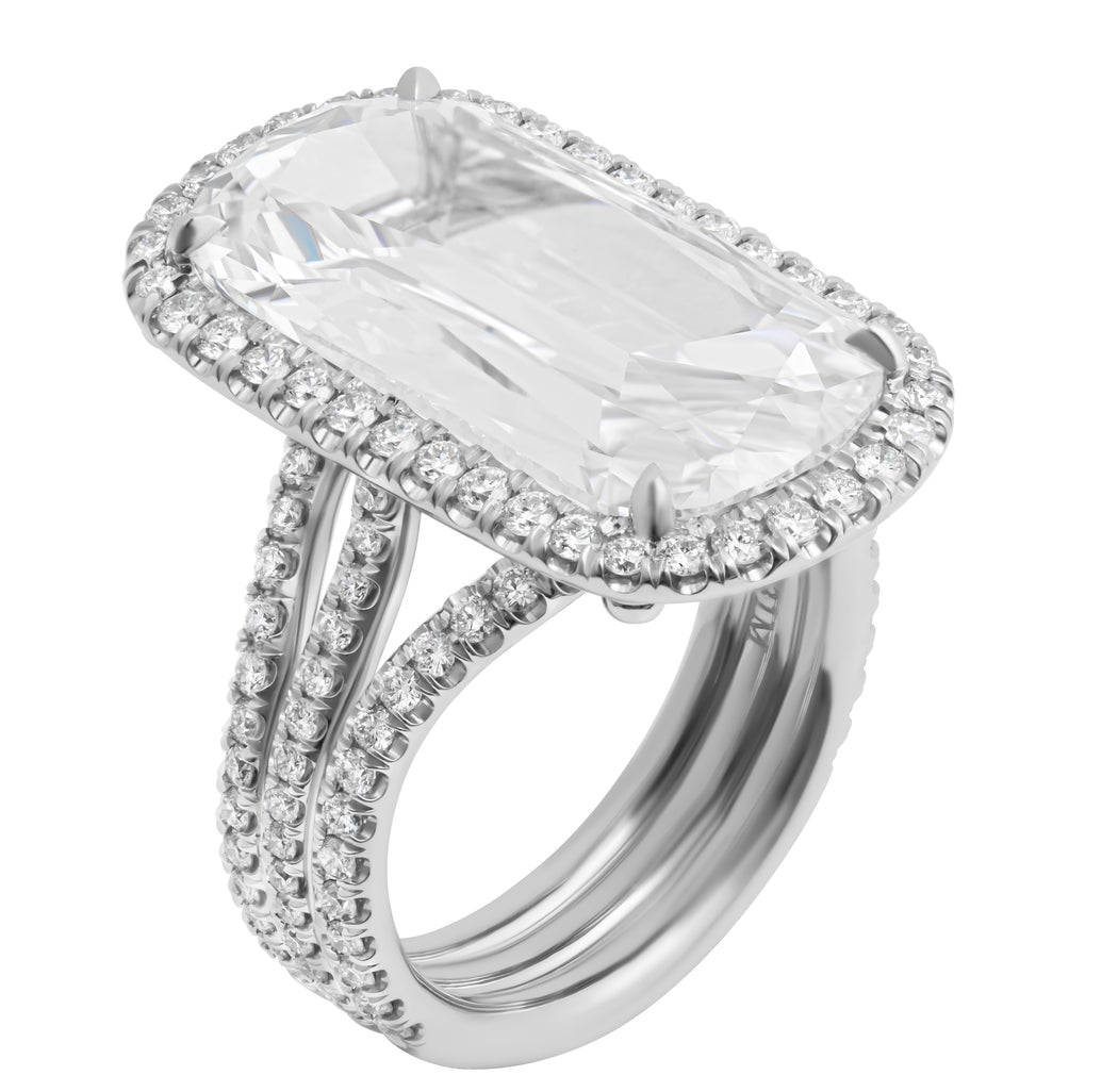 Engagement ring in Platinum.Center: 8.80ct H SI1 Round-Cornered