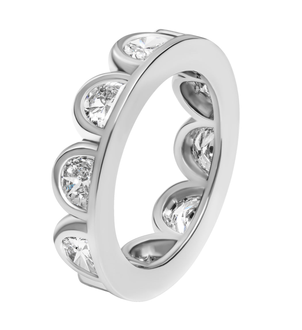 Eternity Band with Half Moon Diamonds in half bezels In Platinum Size: 5.5 Half Moons 10 Stones totaling 1.92ct