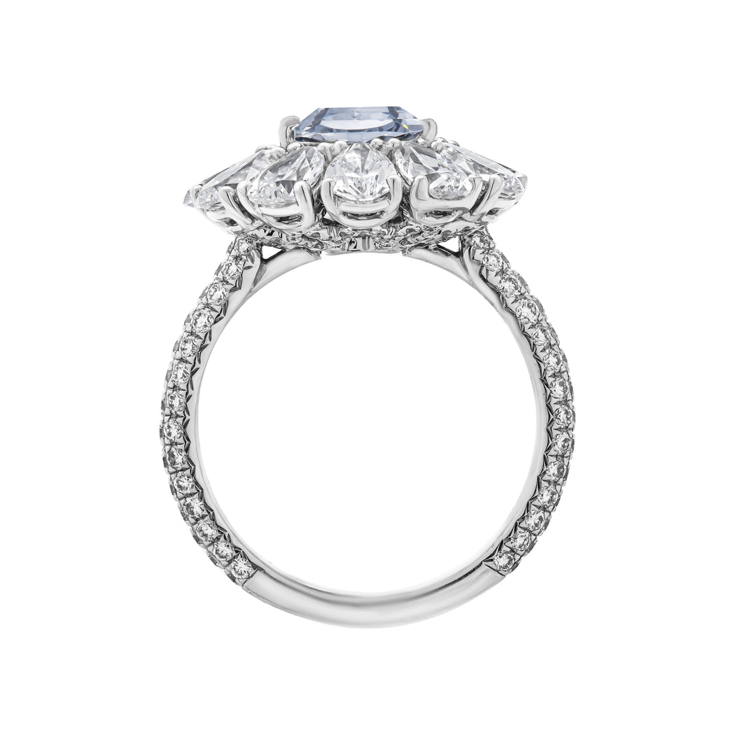 Ring in 18K White gold with pear shape 1.82ct Fancy Vivid Blue