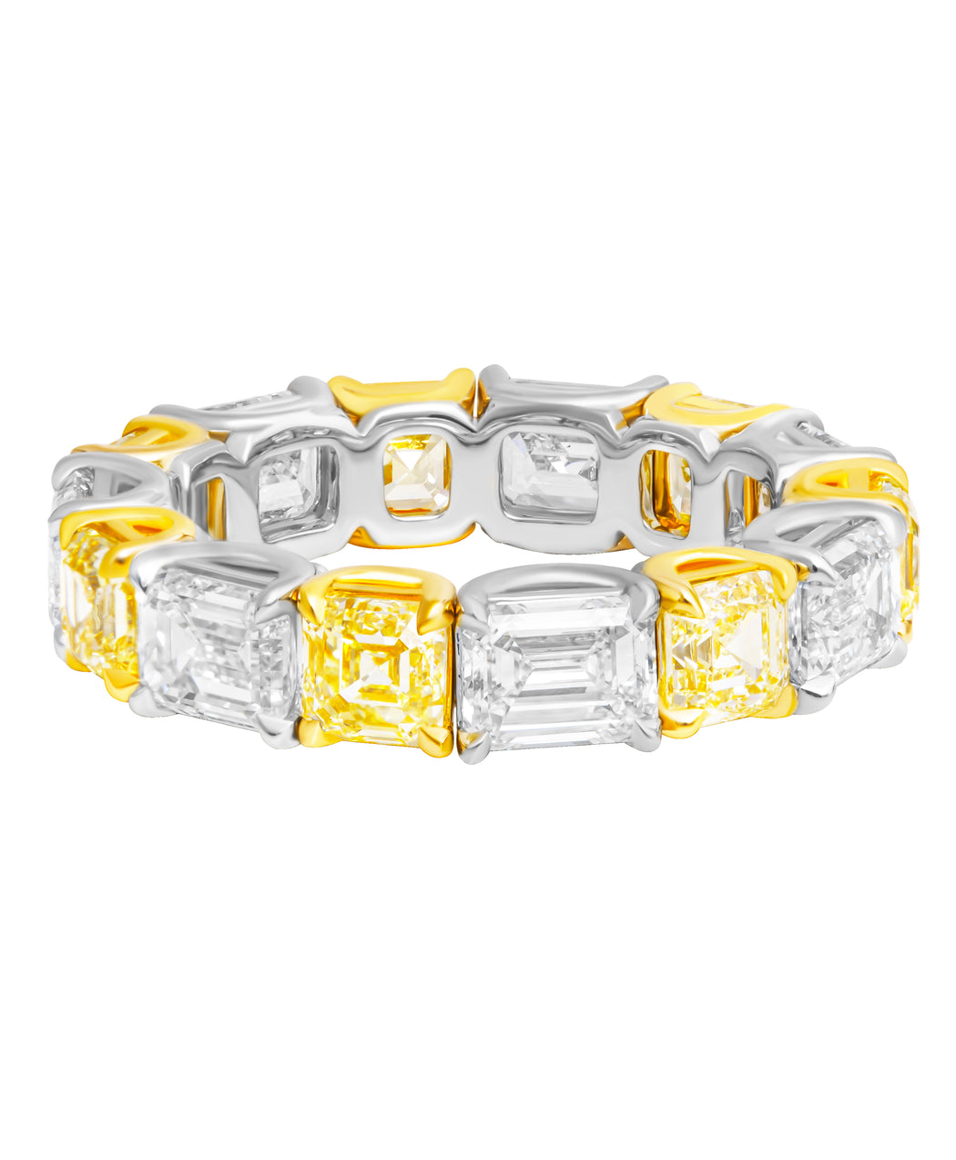 With Fancy Yellow Asscher cut diamonds totaling 2.74ct and