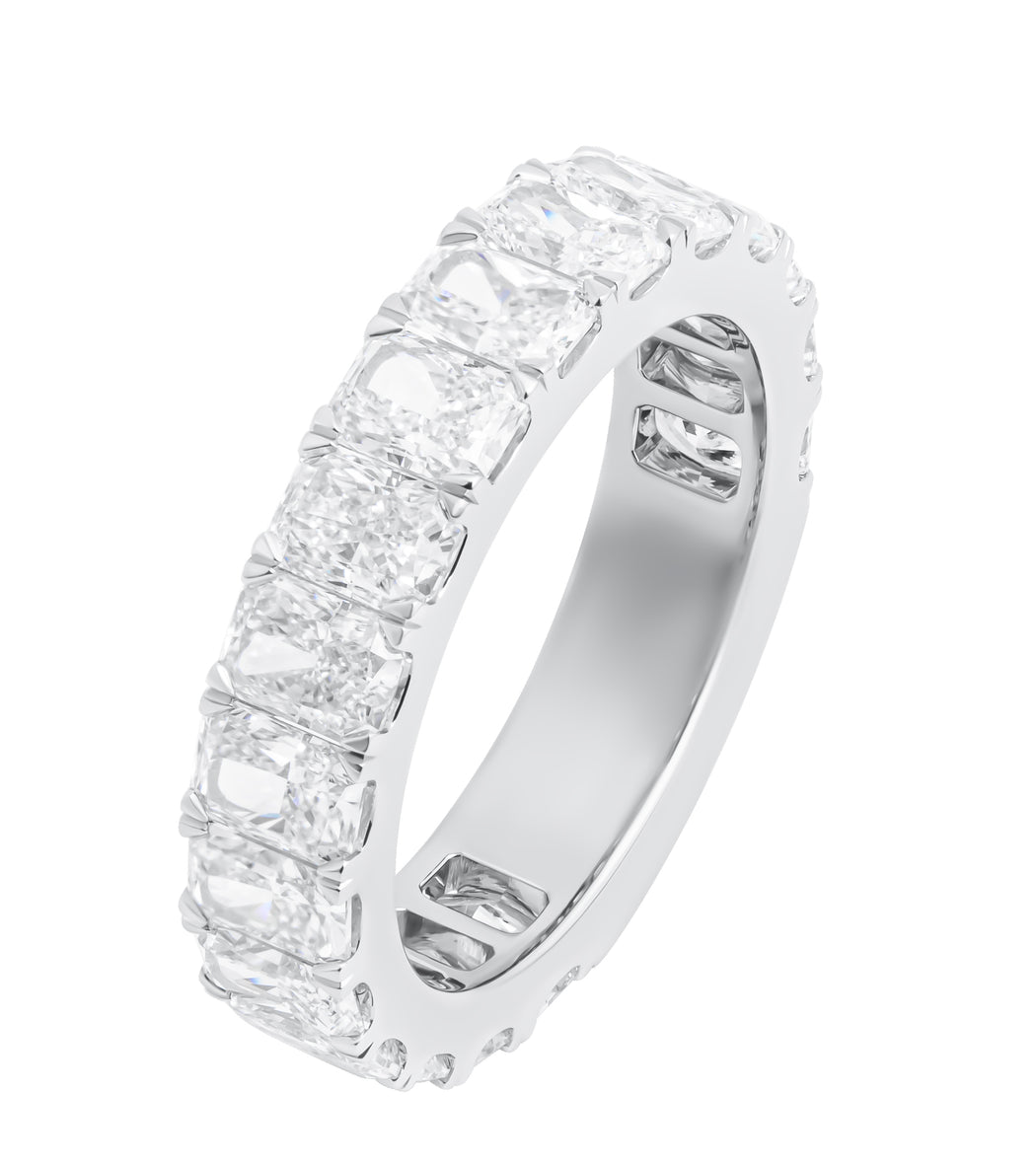 ¾ Wedding band in PT950 with LAB radiant cut diamonds